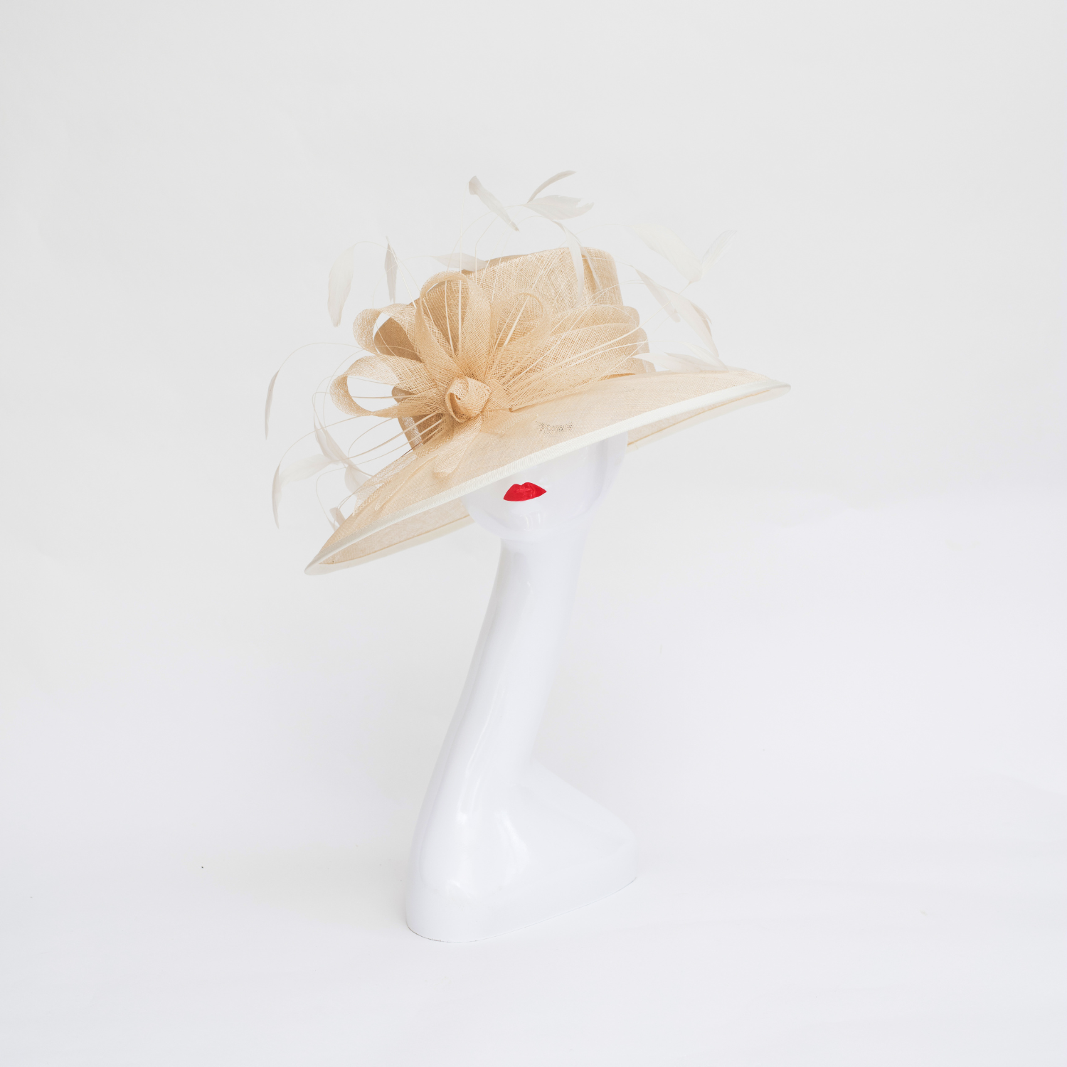 The Cream Drop Brim Feathered Hat is meticulously made with cream sinamay, its petite base and dropped brim is perfect for the summer season. With a sinamay triple fold band, crinoline faux flower, and delicate feather embellishments, this hat becomes a true statement piece.